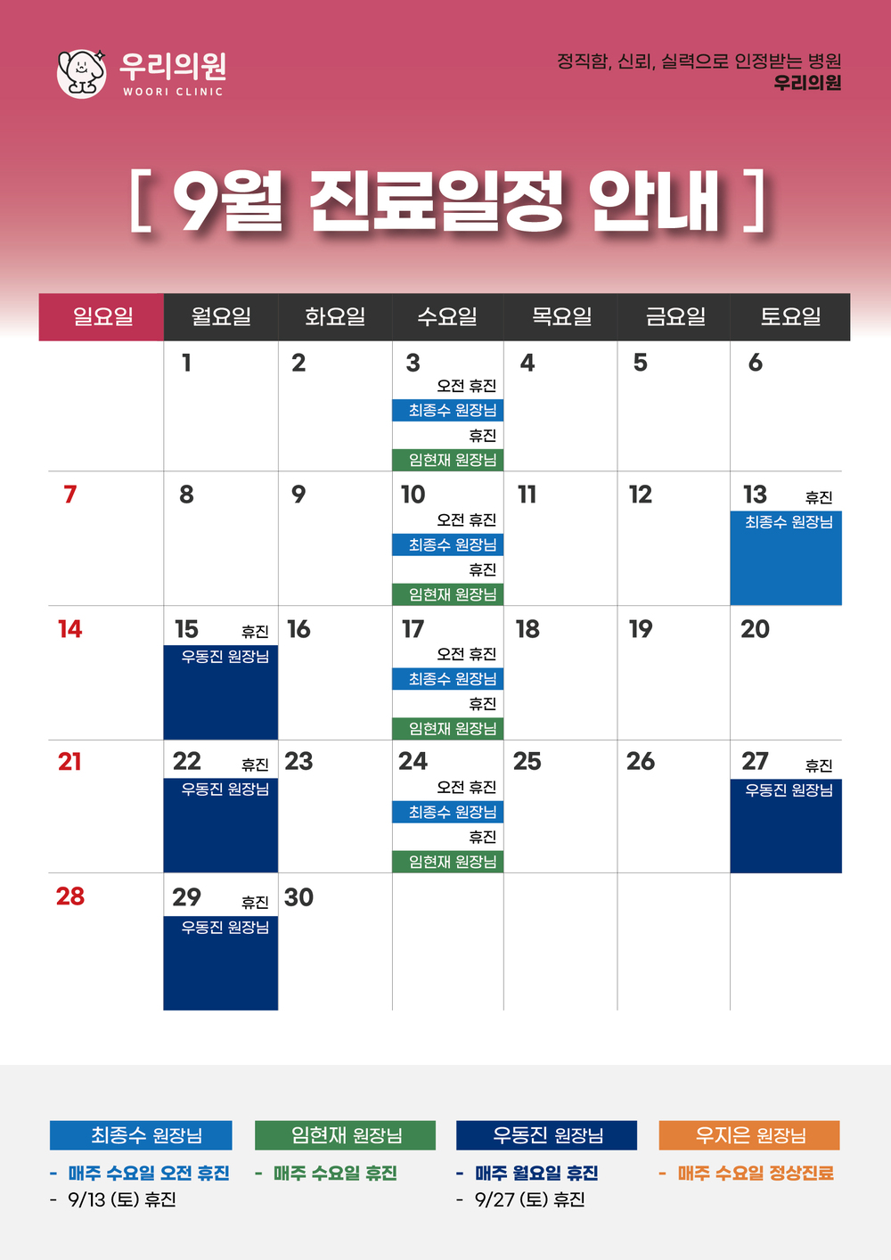 [진료안내] - 2025년 9월 진료안내입니다.